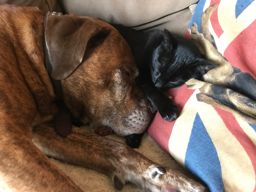 After that quick job we headed home and as soon as we got in he climbed on my lap and slept and slept like he had never slept before, he weighed a ton so we both stretched out on the sofa and dozed off ….I vaguely remember a conversation about no dogs on the furniture or upstairs but the minute he stepped indoors he wasn’t just a dog he was family and I was besotted with him.