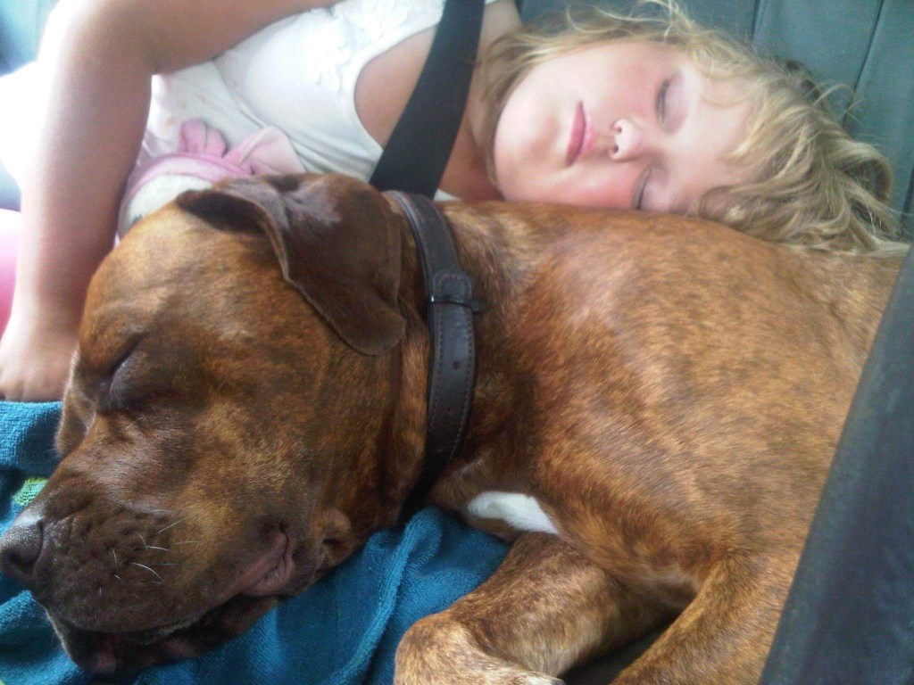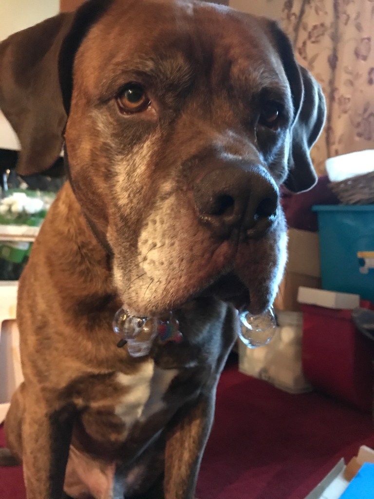 After deciding to make room for a dog in our lives we chose to adopt from a local rescue centre, I visited a couple of times and there was a heap of sad or excited faces but nothing quite right then one afternoon I went and found the most beautiful dog called Marley sitting quietly looking so sad I asked for details on him, he seemed to fit the bill so I got to meet him and took him for a stroll in the woodland in the grounds, he was so soft and gentle it was a done deal providing he got on with the rest of the family, as soon as we could we all went, Millie loved him but what four year old wouldn’t love that face, he was a mixed breed I would say some sort of bulldog breed with a good portion of Labrador and he had the strangest colour coat sort of blue but with a hint gold. We all agreed he was coming home and it started ok until I went to the toilet shutting him downstairs, in the time it took for me to have a quick wee he shredded the stairs door! This was the start of a slippery slope! The separation anxiety was specific to me and escalated at the rate of knots, I nipped out to the car…..he skinned the chaise lounge. By my side he was a dream but only 24 hours after he arrived he started to guard me. My Mum and Dad were the first to visit and I was horrified at Marley’s behaviour, he went berserk, I grew up in a house were we always had three or four dogs but I had never seen one behave like that only in films where they are foaming at the mouth trying to rip someone apart. My dad is an experienced dog handler and told me what to do eventually we got him into the house and he won Marley around but even then if dad moved he growled. Dad understands dogs psychology pretty well and voiced his serious concern about the unhealthy bond he had formed with me in a very very short time. Dad was seriously worried about Millies safety, I don’t think he would have hurt her intentionally but his attacks were so frenzied if she had got in his way when he was on one I don’t think he would have known who he was biting. A couple more terrifying incidents away from the house happened when people I knew walked towards me and I get dogs bark at postmen but he wanted them dead, when he flipped he couldn’t even hear me shouting he was so set on killing people, so a little over a week after he arrived I made the heart breaking decision to return him to the rescue centre, he even treated the man that had looked after him at Viking Oaks only a few days previously with the same contempt. I was broken and still wonder what happened to that poor boy to make him so defensive and what the future held for him but fear it’s best I don’t know.