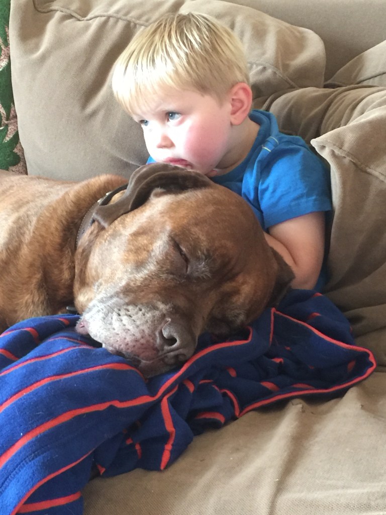 I was worried the big sensitive lump would be put out when I fell pregnant with my son, we was hilarious with my baby bump he knew something was in there and would tip his head on one side listening or stick his nose on my tummy and sniff, I didn’t think he would be happy sharing his family but my fears were unfounded he loved Fabian as much as we did, he was happy to clear up food Fabe threw from his high chair and Fabe found Bentley a great source of amusement, I never left them alone but I know he would never have hurt him if anything I would fear more for Bentley being hurt by Fabian. As they grew up together they were great friends and partners in crime!